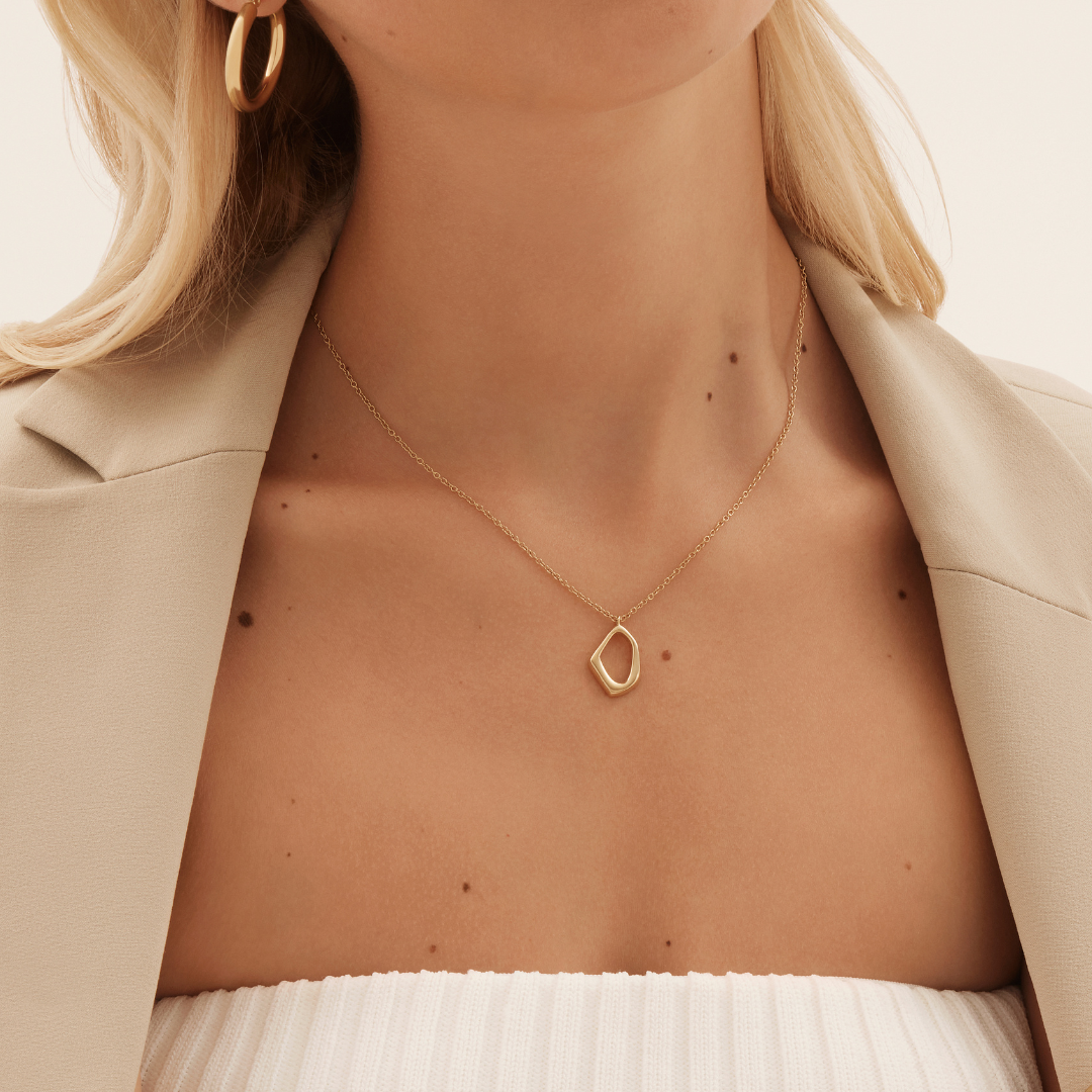 Complete your look with our Nova Necklace. Featuring a dainty organic shaped pendant on a delicate chain, it is a cute and versatile accessory that simply goes with everything. Pair with our Nova Earrings for the prettiest set.